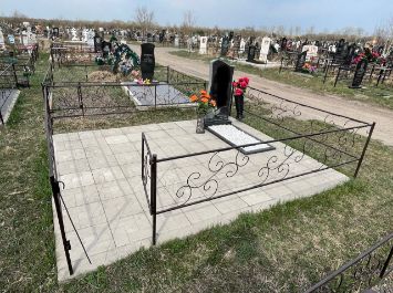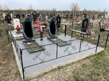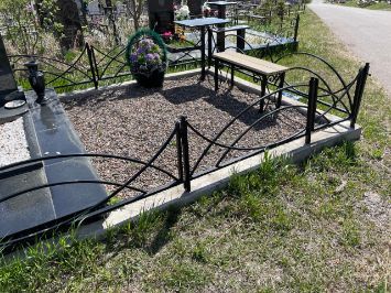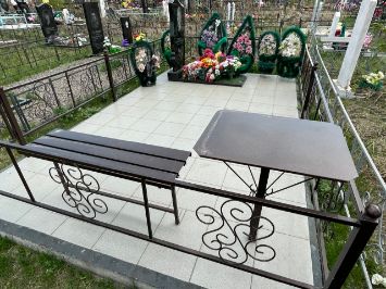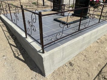 Стоимость комплекса: Памятник, заливка, плитка, стол, лавка, ограда-130000 руб.